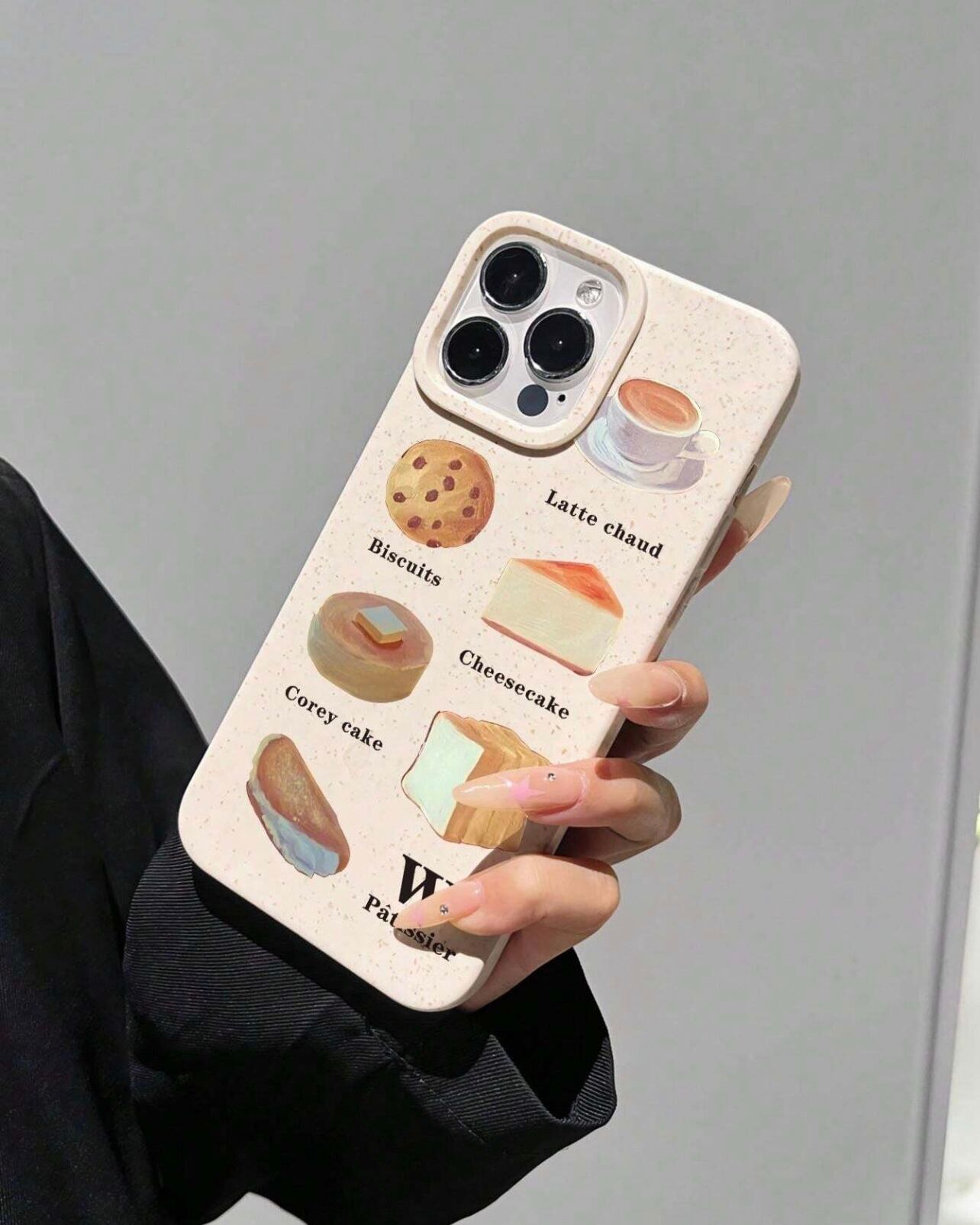 [スマホケース カフェラテ ビスケット チーズケーキ ホットケーキ 食パン フランスパン ブレッド パンケーキ 薄茶 韓国系]