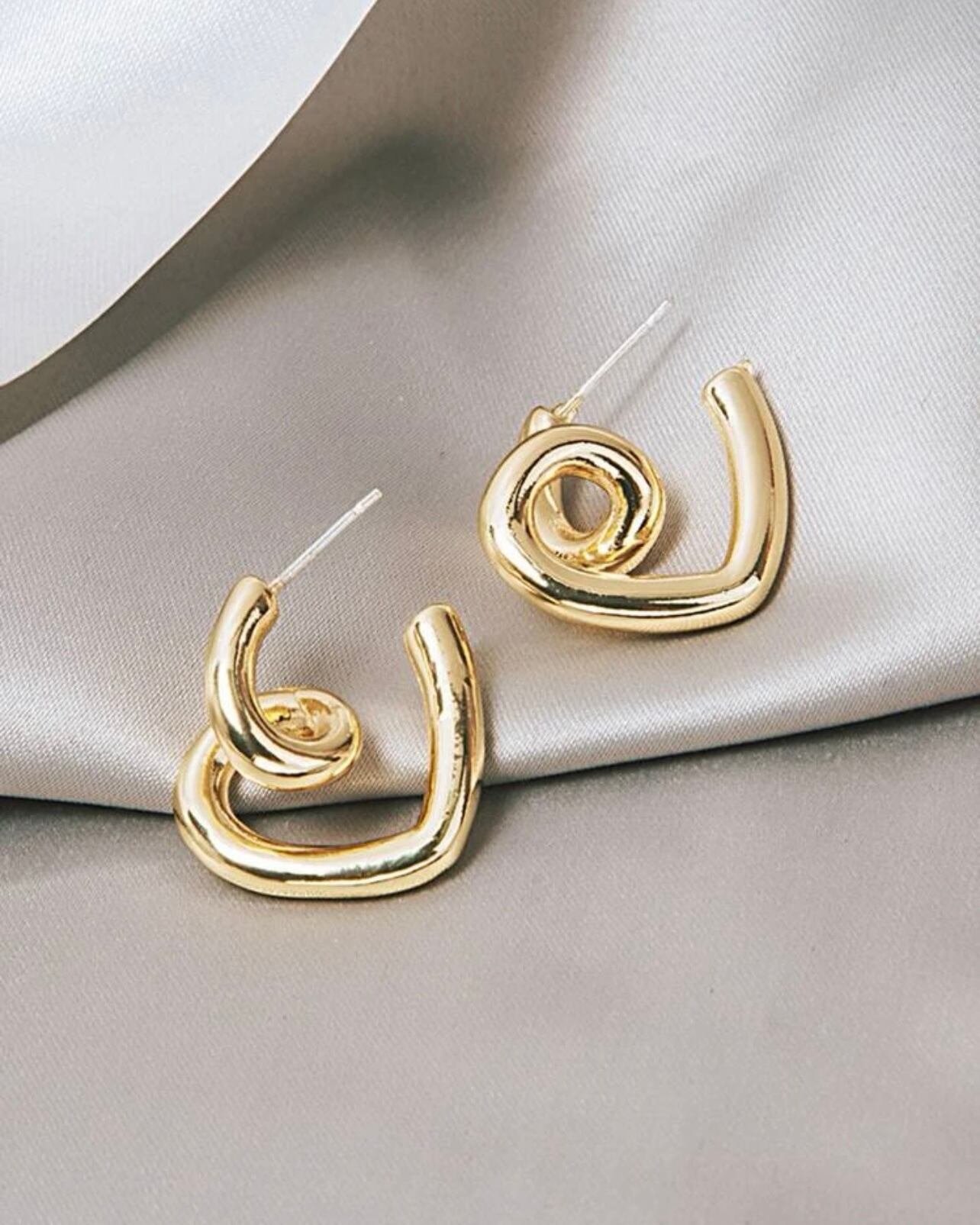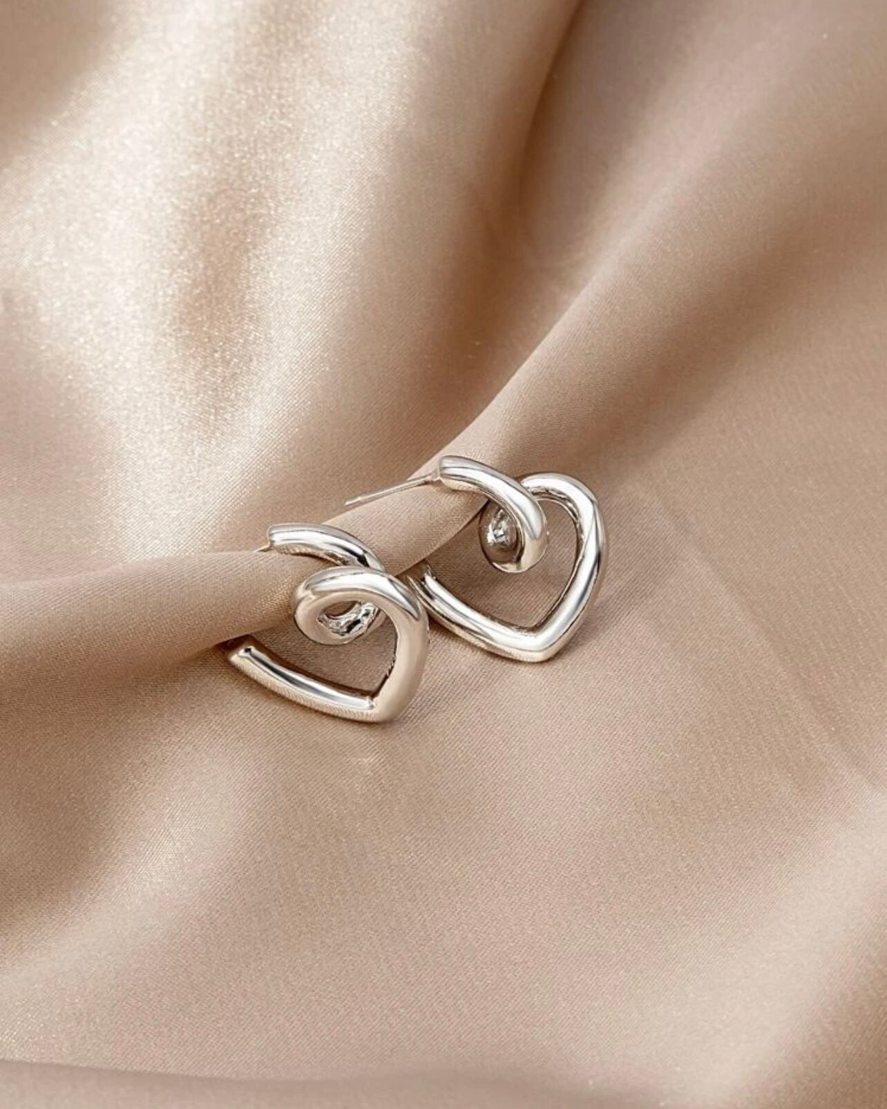 ねじれデザインが斬新なハートフープピアス。シンプルでありながら存在感が抜群。